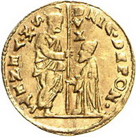 Los-Nummer: Auktion 51 - 3309 Ausländische Münzen und Medaillen Italien-Venedig Nicolo da Ponte 1578-1585, Zecchino. 3,50 g. Gamberini 489, Friedberg 1267, Paolucci S. 72, 1. GOLD. Sehr schön Schätzpreis: 150,- Zuschlag: unverkauft |