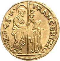 Los-Nummer: Auktion 51 - 3325 Ausländische Münzen und Medaillen Italien-Venedig Francesco Erizzo 1631-1646, Zecchino. 3,49 g. Gamberini 784, Friedberg 1310, Paolucci S. 96, 1. GOLD. Winz. Stempelfehler, fast vorzüglich Schätzpreis: 200,- Zuschlag: unverkauft |