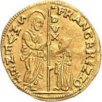 Los-Nummer: Auktion 51 - 3326 Ausländische Münzen und Medaillen Italien-Venedig Francesco Erizzo 1631-1646, Zecchino. 3,46 g. Gamberini 784, Friedberg 1310, Paolucci S. 96, 1. GOLD. Sehr schön Schätzpreis: 150,- Zuschlag: unverkauft |