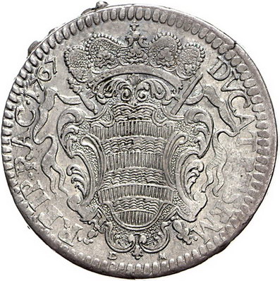 Los-Nummer: Auktion 51 - 3380 Ausländische Münzen und Medaillen Jugoslawien-Ragusa (Dubrovnik) Republik 1358-1805, Rektorentaler 1767 GB/DM. Mimica zu 16, Davenport 1639. Überprägungsspuren, prägebedingte Randunebenheiten, vorzüglich Schätzpreis: 125,- Zuschlag: unverkauft |