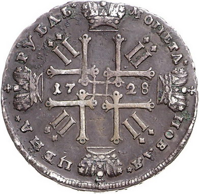 Los-Nummer: Auktion 51 - 3692 Ausländische Münzen und Medaillen Russland Peter II. 1727-1730, Rubel 1728, Moskau. Harris 26, Davenport 1668, Bitkin 53 ff. Patiniert, stärkere Kratzer, schön / sehr schön Schätzpreis: 300,- Zuschlag: 320,- |