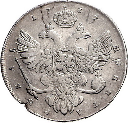 Los-Nummer: Auktion 51 - 3701 Ausländische Münzen und Medaillen Russland Anna Ivanovna 1730-1740, Rubel 1737, Moskau. Davenport 1673, Bitkin 196 ff. Schrötlingsfehler, schön - sehr schön Schätzpreis: 125,- Zuschlag: 180,- |