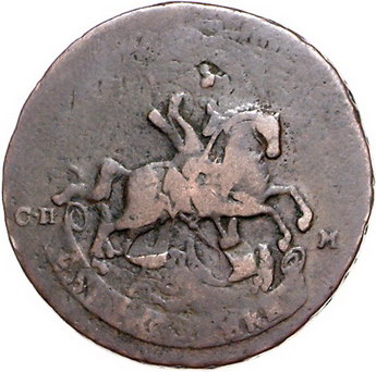 Los-Nummer: Auktion 51 - 3720 Ausländische Münzen und Medaillen Russland Katharina II. 1762-1796, Cu 2 Kopeken 1763, St. Petersburg. Überprägt. Harris 134, Brekke 139/140, Bitkin 580. Schön Schätzpreis: 50,- Zuschlag: unverkauft |
