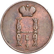 Los-Nummer: Auktion 51 - 3781 Ausländische Münzen und Medaillen Russland Nikolaus I. 1825-1855, Cu Kopeke 1853 BM, Warschau. Harris 276. Sehr schön + Schätzpreis: 50,- Zuschlag: 40,- |