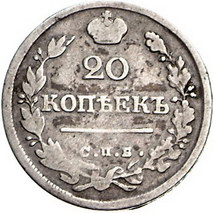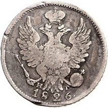 Los-Nummer: Auktion 51 - 3784 Ausländische Münzen und Medaillen Russland Nikolaus I. 1825-1855, 20 Kopeken 1826, St. Petersburg. Harris 317, Bitkin 98. Randfehler, schön Schätzpreis: 50,- Zuschlag: unverkauft |