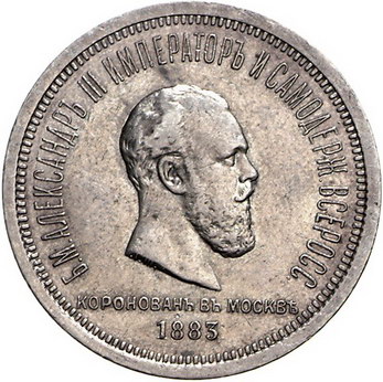 Los-Nummer: Auktion 51 - 3841 Ausländische Münzen und Medaillen Russland Alexander III. 1881-1894, Rubel 1883. Auf die Krönung in Moskau. Harris 422, Davenport 291, Bitkin 217. Sehr schön + Schätzpreis: 125,- Zuschlag: 150,- |