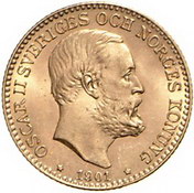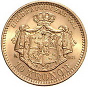 Los-Nummer: Auktion 51 - 3959 Ausländische Münzen und Medaillen Schweden Oskar II. 1872-1907, 10 Kronen 1901. S.M. 33, Friedberg 94. GOLD. Stempelglanz Schätzpreis: 125,- Zuschlag: 100,- |
