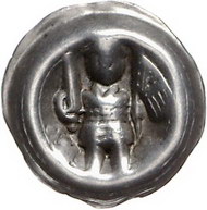 Los-Nummer: Auktion 51 - 218 Altdeutsche Münzen und Medaillen Brandenburg-Preußen Otto II. 1184-1205, Brakteat, Stendal? 0,68 g. Markgraf mit Schwert und Fahne zwischen zwei Lilien. Bahrfeldt 93, Slg. Bonhoff 812, Slg. Löbbecke 449. Sehr schön Schätzpreis: 90,- Zuschlag: 85,- |