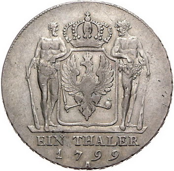 Los-Nummer: Auktion 51 - 500 Altdeutsche Münzen und Medaillen Brandenburg-Preußen Friedrich Wilhelm III. 1797-1840, Taler 1799 A. Jaeger 29, Thun 242, Kahnt 361. Sehr schön Schätzpreis: 50,- Zuschlag: 70,- |