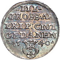 Los-Nummer: Auktion 51 - 3614 Ausländische Münzen und Medaillen Polen-Danzig Sigismund I. 1506-1548, 3 Gröscher 1540. Gumowski 573, Slg. Marienburg 8027, Kopicki 7334, Dutkowski / Suchanek 73. Prachtexemplar. Herrliche Patina. Vorzüglich - Stempelglanz Schätzpreis: 150,- Zuschlag: unverkauft |