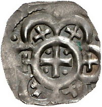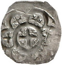 Los-Nummer: Auktion 51 - 87 Altdeutsche Münzen und Medaillen Bamberg, Bistum Otto II. von Andechs 1177-1196, Dünnpfennig. 0,94 g. Kreuz in Rund, in den Winkeln je eine Kugel, außen Sechspass, in den Bögen je eine Kreuz, in den Außenwinkeln je eine Kugel / Bischof (unkenntlich). Krug 44-48 var. Sehr schön - vorzüglich Schätzpreis: 175,- Zuschlag: unverkauft |